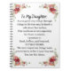 Great idea to keep next to your nightstand or some place available for your daughter to get it and write in there what she can't say face to face. Keeps the situation less stressful and conversations open. She gets to express herself without interuptions and you get to process, think of ways to help and put yourself in her shoes. Hope this helps.!