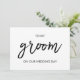 The card showcases a clean and contemporary aesthetic, embracing the elegance of simplicity. The crisp white background serves as a canvas for the stunning calligraphy that adorns the front of the card. The words "To My Groom on Our Wedding Day" are delicately written in a graceful script, creating a visual masterpiece that reflects the profound love shared between the couple.