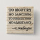 A highly relevant quote from George Washington's Letter to the Jews of Newport, Rhode Island (1790). Shown against a backdrop of the U.S. Constitution. "For happily the Government of the United States, which gives to bigotry no sanction, to persecution no assistance, requires only that they who live under its protection, should demean themselves as good citizens."