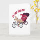 Funny design with Santa Claus and a kangaroo riding a bicycle and zhe caption "To the Beach". Great X-Mas design for Australian Christmas.