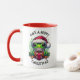 Adorable carton frog holding a Christmas gift holiday stickers. Toad-ily awesome Christmas mug. Add name or family member in the personalise area.