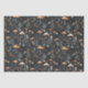 This whimsical design features terracotta toadstool mushrooms on a dark navy blue background with forest berries and fauna.