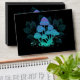 Mysterious, bioluminescent, hallucinogenic, bright toadstools with bushes of marsh plants on night, dark, glowing background. Glowing mushrooms. Goblincore, Mushroomcore,