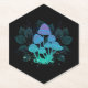 Mysterious, bioluminescent, hallucinogenic, bright toadstools with bushes of marsh plants on night, dark, glowing background. Glowing mushrooms. Goblincore, Mushroomcore,