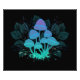 Mysterious, bioluminescent, hallucinogenic, bright toadstools with bushes of marsh plants on night, dark, glowing background. Glowing mushrooms. Goblincore, Mushroomcore,