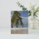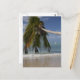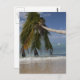 Tobago view of beach with sea, sand, surf and palm tree with summer sunshine with blue sky