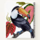 Toco Toucan I by Melissa Wang. A single toucan is perched on a branch with tropical leaves. | 164390Z