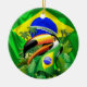 Toco Toucan with Brazil Flag Tie Ceramic Ornament