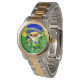 Very good quality watch that looks good whether dressing up or down. The band is sturdy. The watch is rather large so might not work for smaller folks. Recommended as a good gift. Printing is just a touch light but adds a nice touch of personalization.