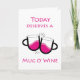 Today Deserves a Mug O' Wine, Cheers and Congratulations paper greeting card. Bold and graphic design of two mugs of wine clinking together. Design in shades of magenta, black, and white. Art, image, and verse copyright © Shoaff Ballanger Studios.