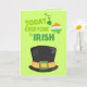 A lovely St. Patrick's Day card, this item features a lime green background with "Today Everyone is Irish" fun card. It features clovers, one bearing the colours of the Irish flag with a themed hat at the bottom. The inside features warm Irish blessings. Even add your own photos, artwork, etc. to the design. Personalise yours today!