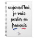 This notebook features the quote 'Aujourd'hui je vais parler en français', in English: 'Today I'm going to speak in French' as I say at the beginning of all my YouTube videos! I hope it can be motivational for you!