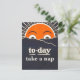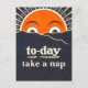 This postcard features a reproduction of a vintage poster of the sun, altered with the phrase, "Today, take a nap."