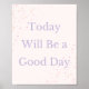 This poster has the inspirational message of, "Today will be a Good Day." This message is set on a light pink background with a pink and yellow polka dots on the top and bottom of this poster.