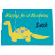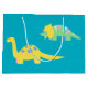 This gift bag is great for the toddler in your life. With a place to customise with his name and age, your little boy will love the simple yellow brontosaurus and green and yellow triceratops illustrations on a bright teal background.