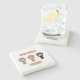 The coasters are gorgeous, a quality feel and heavy weight. They look like a precious archeological find. A rustic stone juxtaposed with a modern floral black and white print. I like the way the print goes slightly imperfect on the cut stone edges giving them a kind-of natural beauty.