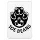 A black paw with black beans as toes, with the text, "Toe Beans," underneath the paw.