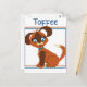 Toffee is a playful puppy in a deep reddish tan with dark brown and cream fur. He has big teal eyes with a matching collar and a diamond-shaped tag. He is very friendly and likes toon kitties.