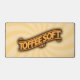 A desk mat with ToffeeSoft's logo on it! Enjoy the colours of toffee and chocolate while you're at your computer.