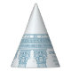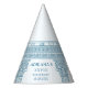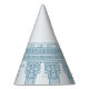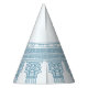 Greek or Roman Toga party hat featuring a minimalist Greek meander pattern and temple columns in blue. Customisable product for a memorable celebration. Perfect for your Ancient Greece or Ancient Rome-themed weddings, engagements, graduation parties, anniversaries, save the dates, bachelorette and birthday parties.