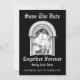 Announce the ethereal union of hearts with our 'Together Forever Ghost Save the Date' card. This exquisite card captures the timeless love between two souls, bound by an unbreakable bond that transcends the earthly realm. The spectral figures on the card stand as a symbol of eternal commitment, their hands joined in a promise that defies time itself. The delicate details and haunting charm create an invitation to witness a love story that resonates with mystery and allure. As you share this card with your loved ones, you're inviting them to mark the beginning of your journey toward forever, a journey that's both enchanting and enduring.