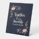 It is sturdy than I expected. Was worried about the material being flimsy but it is not. It is printed on some sort of plastic material. It should serve well at our wedding as long as wind isn’t too bad. Otherwise we will put some paper weights behind it and should be fine.