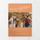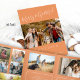 Simple minimalist style Merry and Grateful together chic handwritten typography script family year in review 8 photo collage gallery orange apricot holiday card with your custom personalised text.