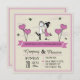 A cute, cartoon-style invitation featuring the newlyweds and a banner held up by heart-shaped balloons. Perfect for engagement parties, couples showers, wedding rehearsal dinner parties, post wedding brunch parties and more.