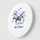 Purchased this online and it got delivered quickly. It was a present for my Dads 70th birthday. He loves clocks so decided to get him one with something written on it. Battery went in and it started working straight away. Dads had no issues with it. Printing was just how it came up online.