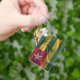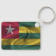 Keychain with the flag of Togo in wavy fabric style design. This design features the Togolese flag colours and design with a beautiful waving material textured effect. This flag design is a great way to show you are proud to be from Togo.