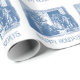 Beautiful antique illustration of a vintage Christmas blue toile Holiday wrapping paper. The message says Happy Holidays in toile blue font.