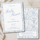 Toile Blue Botanical Line Drawn Baby Shower Invitation