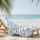 Elevate your beach outing with our new Sherpa Blanket design featuring an elegant Toile-de-Jouy Chinoiseries blue floral pattern, against a custom white background.