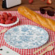 Party in style with our new paper plates design, featuring an elegant Toile-de-Jouy Chinoiseries blue floral pattern beautifully framed on a custom white background.