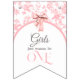 Celebrate your little girl's first birthday with this charming Coquette-inspired Bunting Bunner Flags, perfect for the modern, stylish one-year-old! Featuring a delicate pink bow and the playful slogan "Girls Just Wanna Be ONE," this design captures the essence of youthful fun and elegance. Ideal for a chic, feminine birthday celebration, this design blends a sweet coquette style with soft, inviting colours. Customise the details to make it uniquely yours and create a memorable first birthday announcement that family and friends will adore.