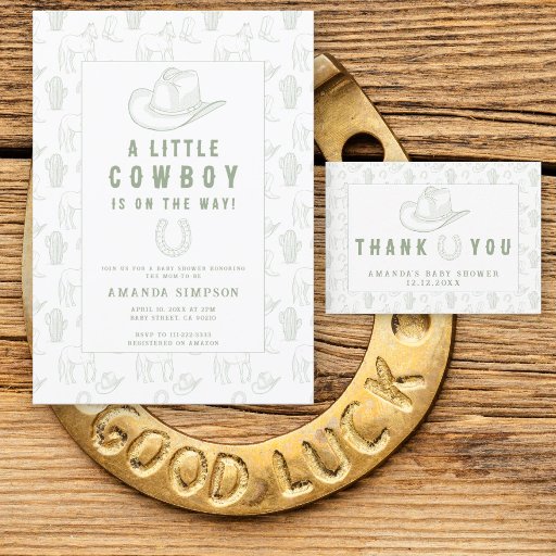 Toile de Jouy Green Cowboy Western Baby ShowerDesigned by Valentina Kashirskaia