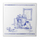 A delightful toile-inspired ceramic tile in blue willow colours featuring playful kitty cats romping in a bathroom.