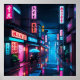 Lofi-style art showcasing a small street in Tokyo during a rainy night, with neon lights illuminating the surroundings.