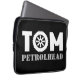 The name Tom with the letter O as a wheel. For a car / bike fanatic, mechanic or driver.