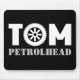 The name Tom with the letter O as a wheel. For a car / bike fanatic, mechanic or driver.