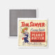 Tom Sawyer peanut butter is a vintage ad from 1945. It shows a small boy bare foot and dressed in overalls and straw hat.