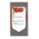This tomato canning jar label has tomatoes surrounded by vines and leaves with a background of black and white chequerboard. Make your next jar of tomato sauce be as pretty as your kitchen with this design.