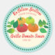 Cute home canning labels for your tomato sauce, this one features colourful tomatoes with basil and your choice of colour scheme, personalised with your name, food title and other text.