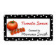 Pretty canning labels ready for you to personalise with your own information. A black with white polka dot frame, around the edges of this white canning label. Graphics and a photo combined of tomatoes, in the left lower corner, with red and black text. Great for your business or your home made goodies. Customise if you want to change text colour or font style. Perfect for anything in a jar, box, or can.