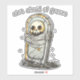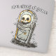 This is a cute halloween sticker that features a skeleton embedded into a tombstone. You can customise this sticker by updating the default text "ain't afraid of graves".