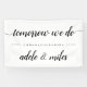 Elegant banner design is perfect for welcoming guests to your rehearsal dinner the evening before your wedding. Simple black and white design features "tomorrow we do" in crisp black calligraphy script. Personalise with the couple's names beneath.