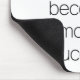 The product itself is good quality and I like the simplistic elegant design. The only criticism I have is that it's not really accurately represented by the picture provided. I thought that the mousepad would be a non-porous or laminate surface and as such the gold writing would actually shine against the soft pink. However the design is printed on a thick fabric surface, so the gold colour is just the shade of gold but doesn't stand out from the pink background. (See picture)