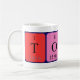 Tomos spelled out as T O Mo S (Tritium Oxygen Molybdenum Sulfur) on a mug for the scientist in you.