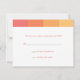 Four tonal citrus orange and yellow panels in succession from dark to light form the top border for this Bat Mitzvah reply card that coordinates with matching tonal citrus invitations. Your customisable dark orange text prints below. Available with matching favours and two sizes of invitations (5"x7" and 4"x9.25") in alternate colours with options for the Bat Mitzvah.