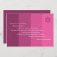 Four tonal burgundy and pink panels in succession from dark to light form the background for this Bat Mitzvah invitation. Your customisable white text prints across the length of the card with a deep burgundy Star of David shining down on it all. Available with matching reply cards, favours and 4"x9.25" invitation size in alternate colours with options for the Bar Mitzvah.